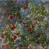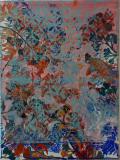 Elle vit et peint à Thoard (04) en haut d’une colline, entourée de nature, prélève des motifs qu'elle sculpte sous forme de tampons et de pochoirs. Elle les encre de couleurs-matières qui virevoltent combinés parfois à des collages qui font entrer nos jardins d’enfance sur ses toiles.